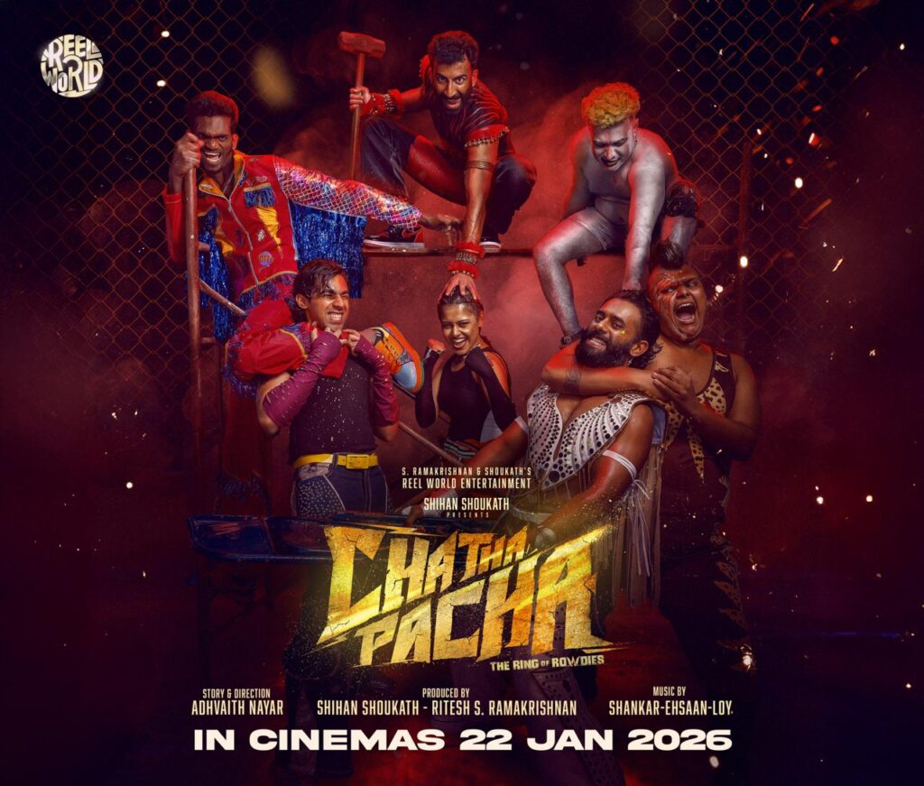 शिहान शौकत द्वारा निर्मित और दिग्गज अभिनेता मोहनलाल के भतीजे अध्वैत नायर द्वारा निर्देशित ‘चथा पचा – द रिंग ऑफ राउडीज़’ मलयालम सिनेमा के लिए एक नया और अनोखा क्षेत्र तलाशती है। यह फिल्म WWE-स्टाइल स्पोर्ट्स एंटरटेनमेंट की हाई एनर्जी को भावनात्मक रूप से सशक्त कहानी कहने के साथ जोड़ती है। कहानी उन पूर्व कैदियों के समूह के इर्द-गिर्द घूमती है जो मिलकर एक अंडरग्राउंड रेसलिंग क्लब बनाते हैं।