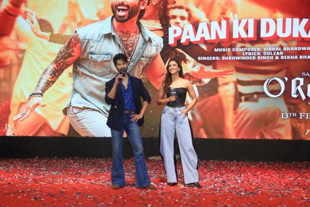 निर्माताओं ने अब मुंबई के बांद्रा फोर्ट में एक मेगा इवेंट में अत्यधिक प्रतीक्षित पावर ट्रैक ‘पान की दुकान’ लॉन्च किया है। इस शानदार लॉन्च में शाहिद कपूर ने ट्रिप्टी डिमरी के साथ एक ऊर्जावान प्रदर्शन किया, जहां उन्होंने मीडिया के साथ बातचीत की और पान खाते हुए दिखाई दिए।